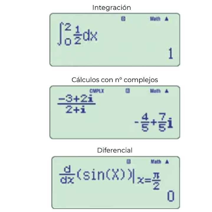 Cálculo avanzado: Número transcendental: e. Cálculos con números de base n. Operaciones lógicas. Cálculo de números complejos. Cálculos matriciales. Cálculos vectoriales. Cálculos diferenciales. Cálculos de integración.