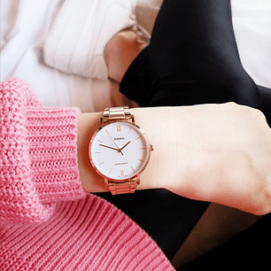Reloj Casio Tank Mini Vintage Plateado Rosado LTP-V007D-4E