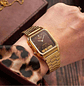 Un aspecto vintage en colores clásicos: carcasa y correa con acabado metálico dorado que se complementan con una esfera marrón con toques metalizados.